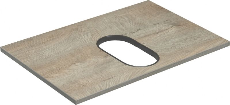 Столешница Лофт Фабрик в цвете Дуб Эндгрейн выполнена из влагостойкой ламинированной плиты. Столешница является необходимым дополнительным элементом для тумбы Лофт Фабрик 65 в цвете Дуб Эндгрейн при выборе опции с накладной раковиной.