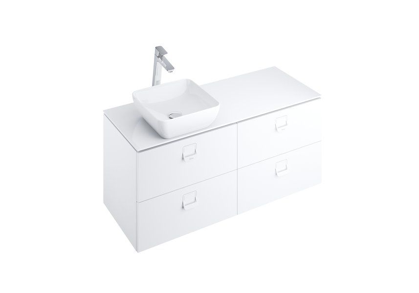 Лакированная влагостойкая столешница Comfort 1200 с глубокой пропиткой предлагается в белом цвете с высоким блеском. Она устанавливается на подвесную тумбу SD Comfort 600 или даже на две тумбы SD Balance 600. Отверстие для умывальника и смесителя предварительно не просверливается. Это позволяет разместить умывальник на столешнице в соответствии с вашими собственными потребностями (над тумбой - только посередине) и установить смеситель в любом месте около умывальника. Комбинация столешницы с тумбой создаст щедрое место для размещения и хранения вещей. Если столешница устанавливается на одну подвесную тумбу с одной стороны, то с другой стороны необходимо установить консоль для столешницы Balance/Comfort 1200. Под столешницей можно разместить практичный полотенцедержатель Comfort белого цвета.