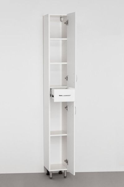 Колонна напольная бренда "Style Line" Эко Стандарт 24. Фурнитура - хром, эксклюзивный декор "Луино" - ламинация внутренней стороны изделия. Направляющие полного выдвижения Hettich; сборка изделия с помощью эксцентриковых стяжек Hafele; все материалы полностью влагостойкие