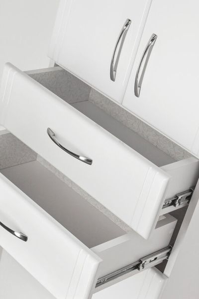 Колонна напольная бренда "Style Line" Эко Стандарт 48 с двумя ящиками. Фурнитура - хром, эксклюзивный декор "Луино" - ламинация внутренней стороны изделия. Направляющие полного выдвижения Hettich; сборка изделия с помощью эксцентриковых стяжек Hafele; все материалы полностью влагостойкие