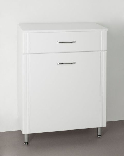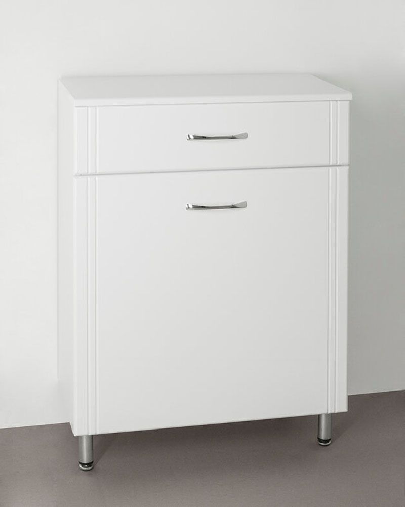 Комод бренда "Style Line" Эко Стандарт 600 с одним ящиком и встроенной корзиной. Фурнитура - хром, эксклюзивный декор "Луино" - ламинация внутренней стороны изделия. Все материалы полностью влагостойкие