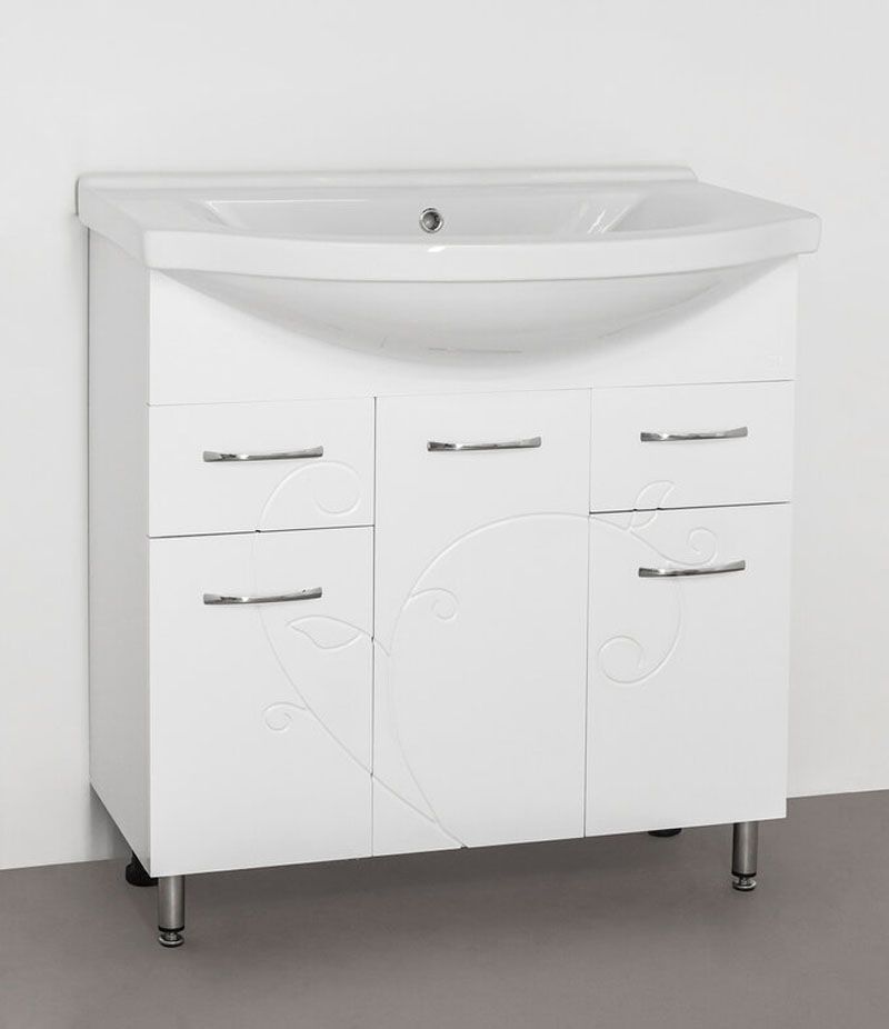 Тумба напольная бренда "Style Line" Эко Фьюжн 26 с 2 ящиками. Фурнитура - хром, тонкая элегантная декоративная фрезеровка фасадов. Направляющие полного выдвижения Hettich; эксклюзивный декор "Луино" - ламинация внутренней стороны изделия; сборка изделия с помощью эксцентриковых стяжек Hafele; все материалы полностью влагостойкие. Данная тумба предусматривает открытую подводку воды