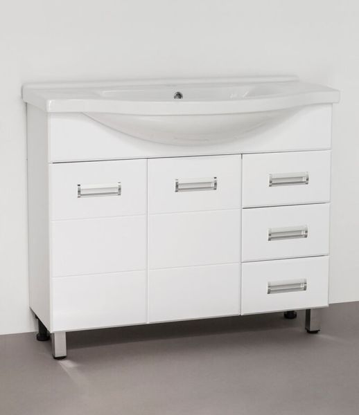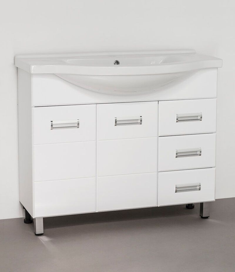 Тумба напольная "Ирис" с прямоугольными фасадами современного дизайна, декорированная врезными ручками хром/матовый хром. Направляющие полного выдвижения Hettich, обеспечивают плавность и бесшумность хода, высокую надежность и прочность. Данная тумба предусматривает открытую подводку воды
