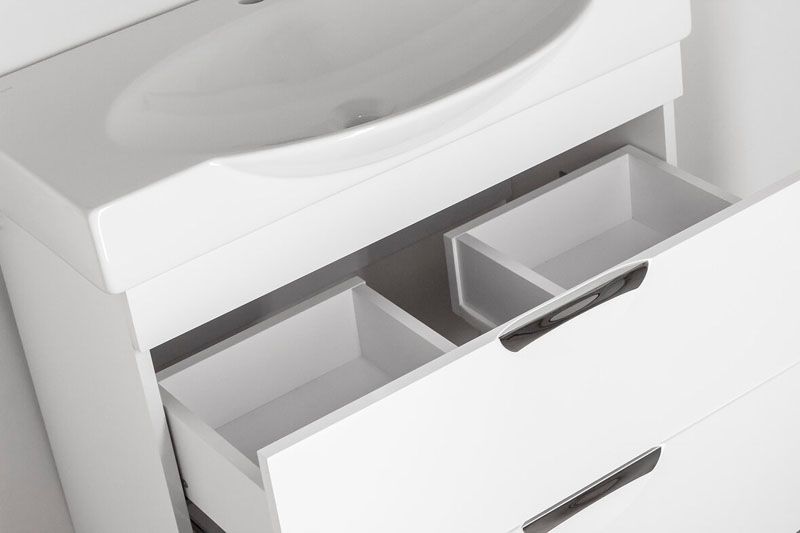 Тумба подвесная бренда "Style Line" коллекции "Жасмин 2" с двумя ящиками и стильными врезными ручками. Фурнитура - хром. Доводчики "Hettich" обеспечивают плавность и бесшумность хода, высокую надежность и прочность. Боковины изделий в пленке в цвет фасадов. Данная тумба предусматривает открытую подводку воды