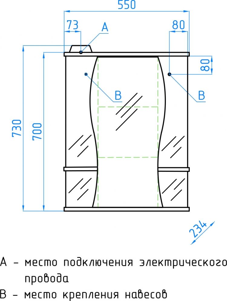 Зеркало-шкаф бренда "Style Line" коллекции "Лорена 55/С" с высокоточной обработкой кромки фацетом и подсветкой. Фурнитура - хром. Кромка зеркала "Лорена 55/С" зашлифована, что защищает от порезов. Лазерная гравировка фирменного логотипа. Край полочек имеет трапецевидную еврокромку. Эксклюзивный декор "Луино" - ламинация внутренней стороны изделия