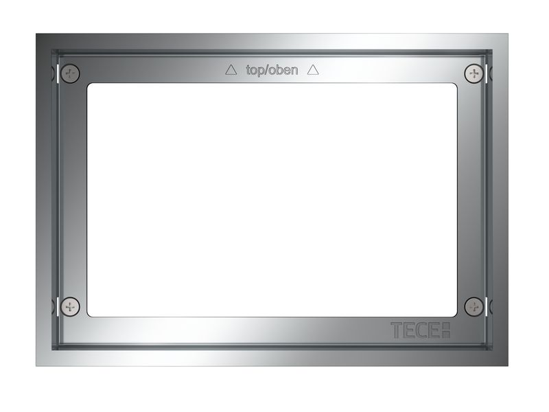 Металлическая декоративная рамка для использования вместе с монтажной рамкой. Закрывает неровные кромки настенной плитки. Декоративная рамка с регулированием глубины для отделки стен толщиной 5–18 мм (18–33 мм с использованием регулировочных болтов — арт. 9820181).