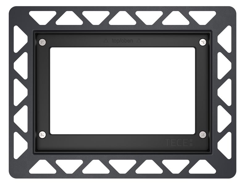 Монтажный комплект для установки стеклянных панелей смыва унитаза TECEloop/TECEsquare, TECElux Mini, а также TECEnow на уровне стены. Рамка для облицовки стеновой плиткой с регулированием глубины в диапазоне 5–18 мм (18–33 мм с использованием регулировочных болтов — арт. 9820181). В комплект входит инструмент для монтажа/демонтажа панели смыва. Монтажная рамка необходима при облицовке стены! Внимание! Совместима с модулями для унитазов для сухого монтажа, а также с конструкцией для кирпичных стен вместе с системой защиты застенного пространства TECEbox (артикул 9030029). Для создания ровной кромки выреза в плитке используйте станок гидроабразивной резки.