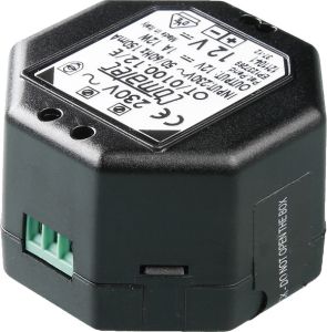 Для монтажа в стандартных распаечных коробках ? 60 мм, возможно подключение до 5 электронных панелей смыва для писсуаров или 1 электронной панели смыва для унитаза. Электрическое соединение: 230 В Выход: 12 В DC