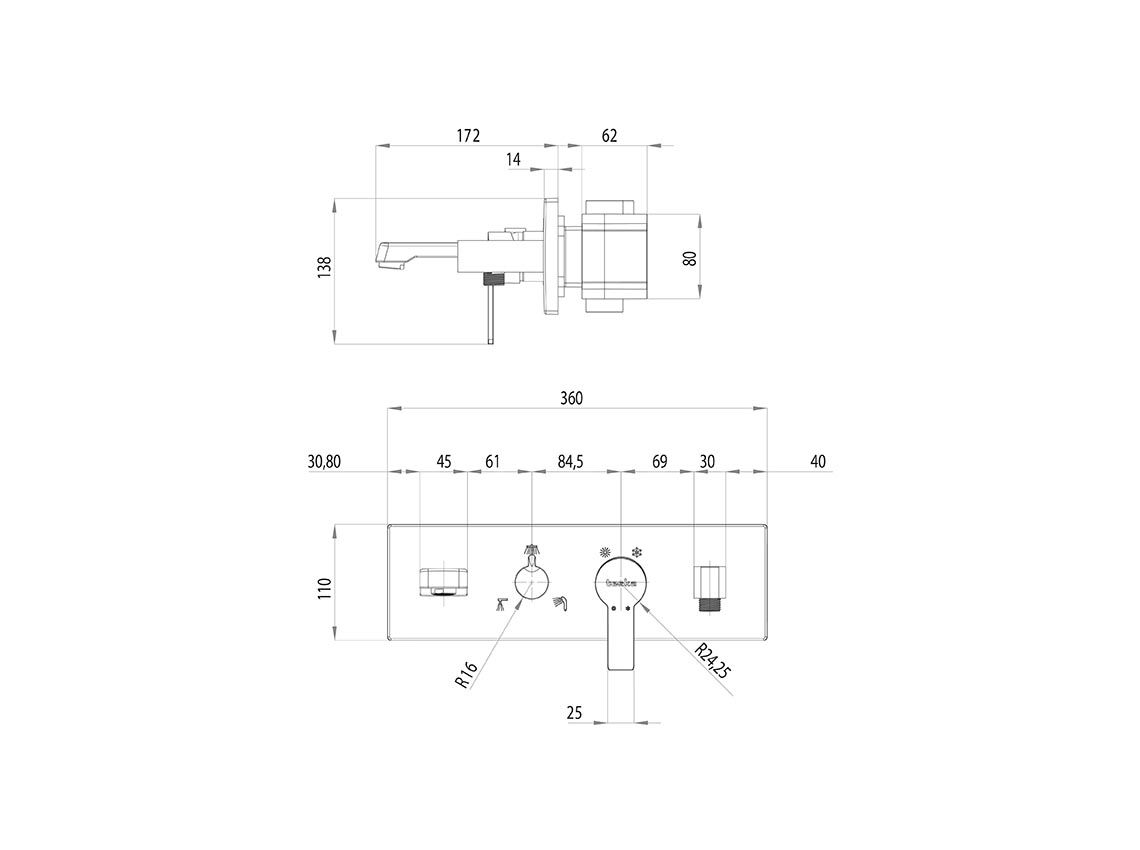 Размер верхнего душа, см:25