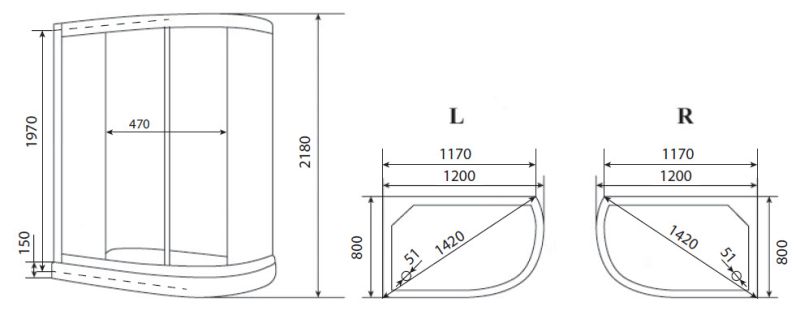 Timo eco ТЕ-0702 Р L душевая кабина (120*80*215)