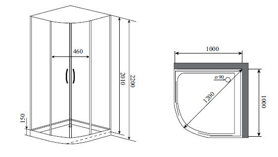 Форма четверть круга, Управление пульт ДУ, Зона гидромассажа гидромассаж спины