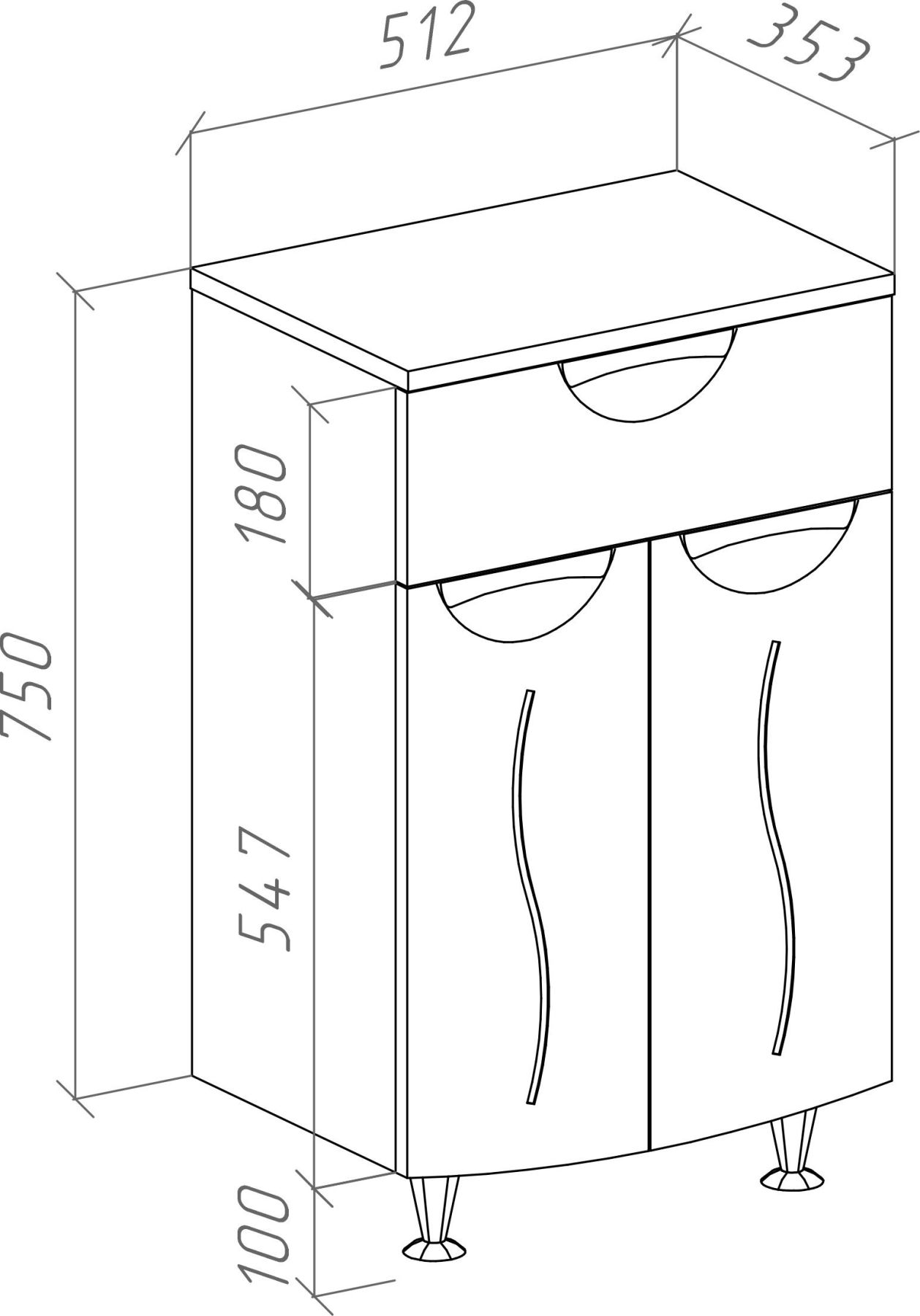 Эргономичное хранение: Распашные дверцы с доводчиками и выдвижной ящик позволяют организовать пространство для косметики, гигиенических принадлежностей и бытовых мелочей.