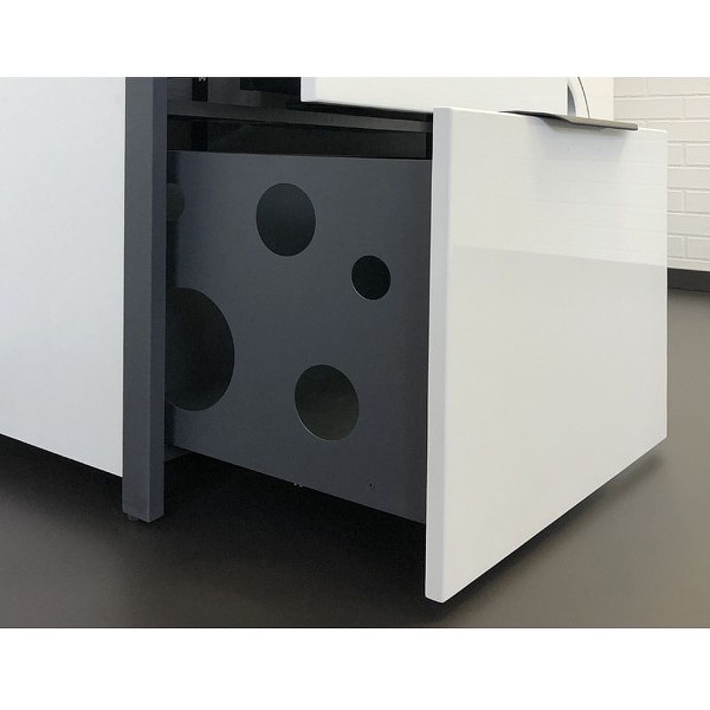 Оснащение: механизм плавного и бесшумного закрытия, направляющие скрытого монтажа.