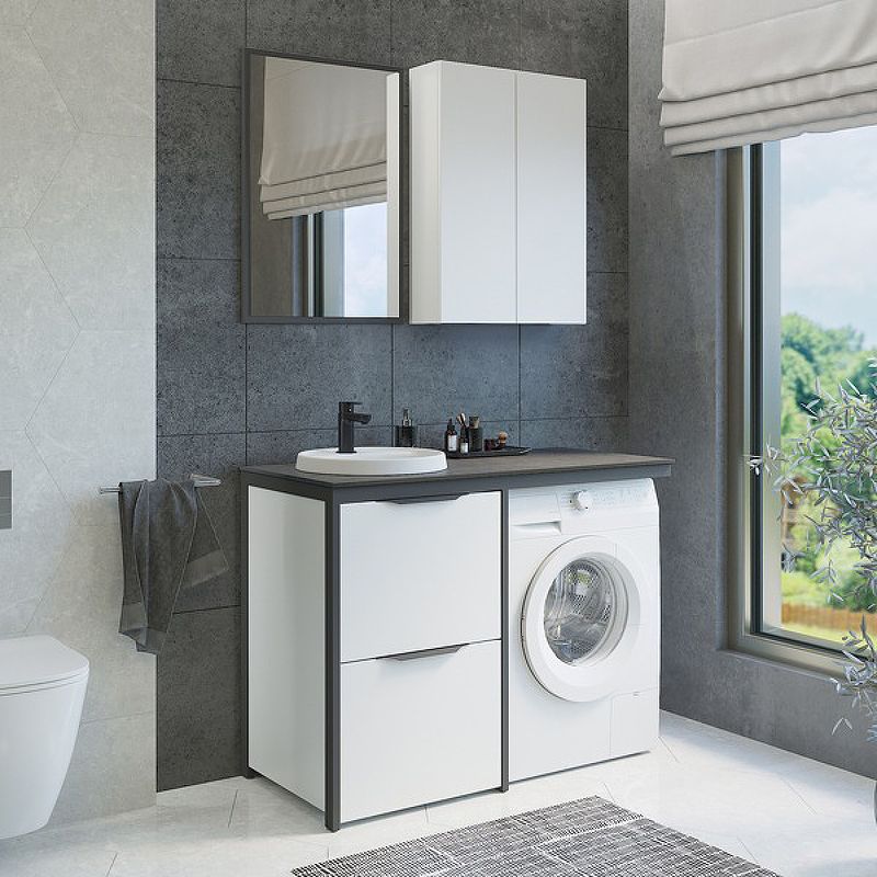Набор мебели под стиральную машину Comforty Лозанна-120 с графитовой столешницей с раковиной Art InsideХарактеристики:Тумба:Цвет корпуса и фасада: белый.