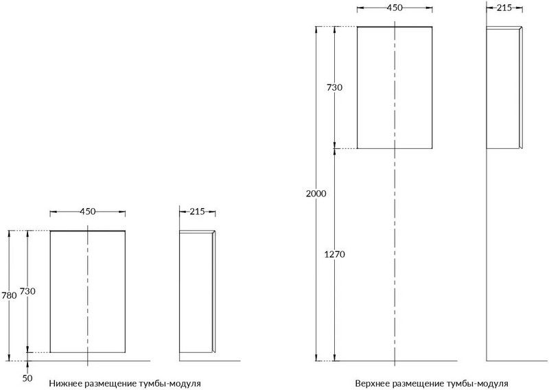 Подвесная тумба CARAVAN используется в качестве модуля хранения или пенала. Раковина на данный модуль не устанавливается. Боковины для модуля при необходимости нужно приобретать отдельно (для завершённого решения нужно 2 шт.) Конфигурация подвесной тумбы: дверца Push to Open, петли Hettich (есть возможность перевесить на другую сторону), две стеклянные полочки (неосветленное стекло), фасад и столешница – фрезерованный МДФ.