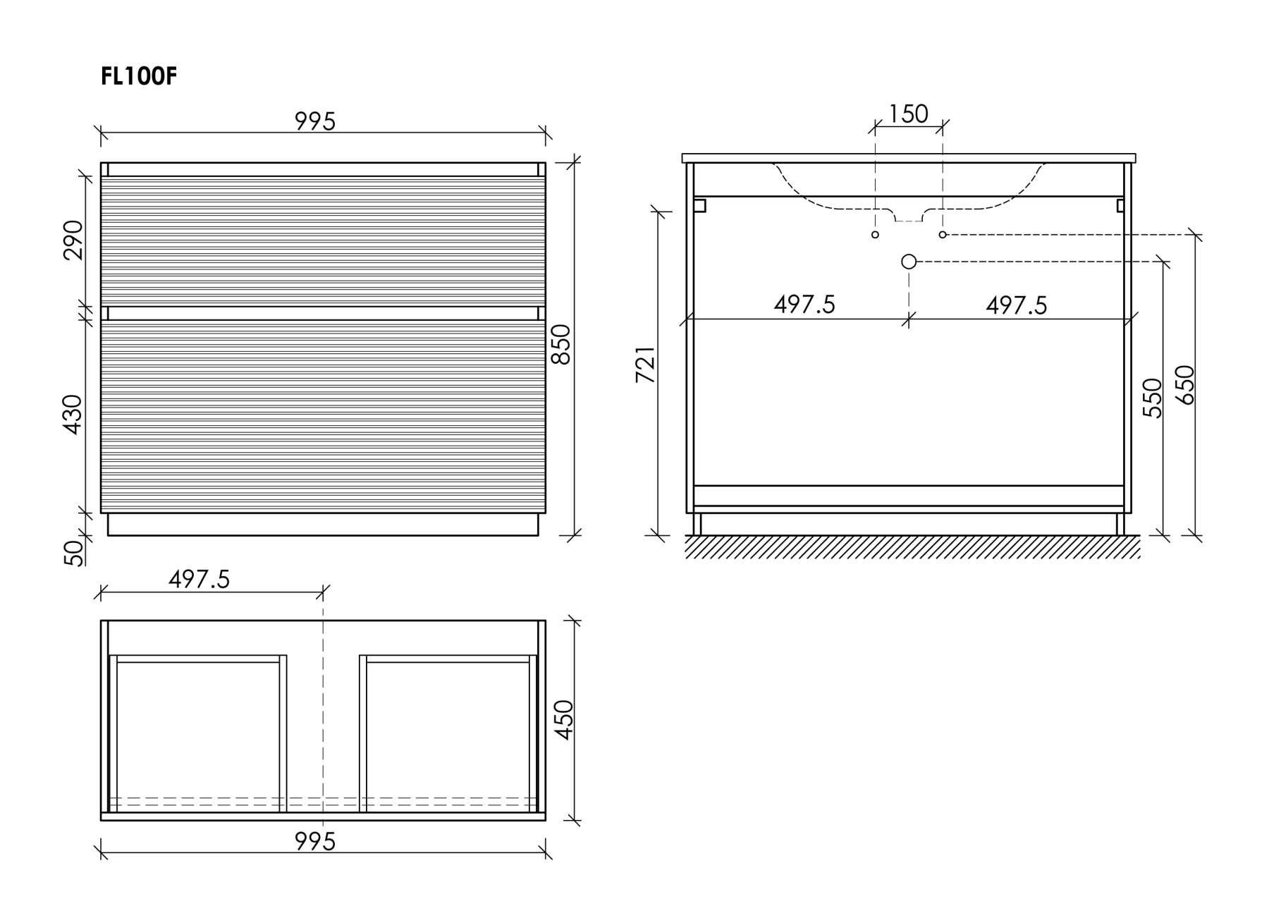 • Тумба напольная с двумя выдвижными ящиками с доводчиками скрытого монтажа