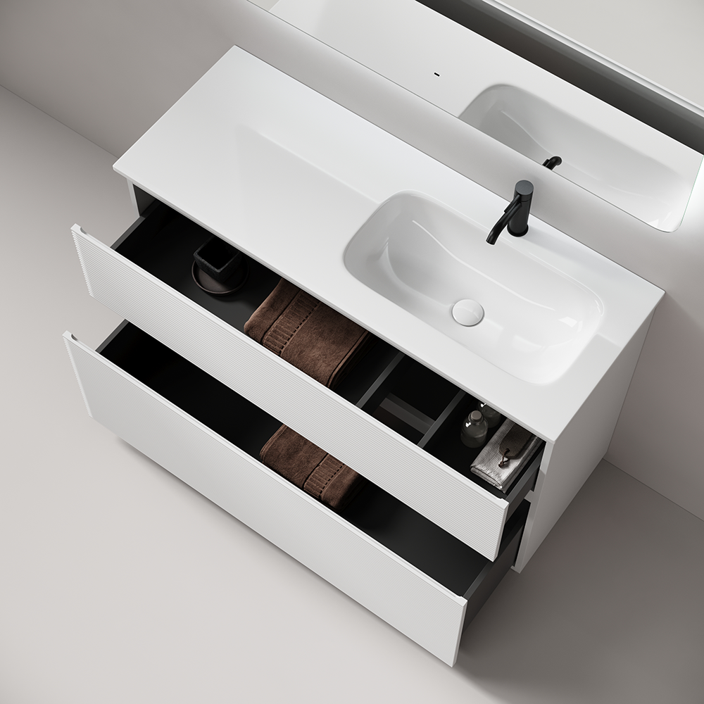 • Тумба напольная с двумя выдвижными ящиками с доводчиками скрытого монтажа