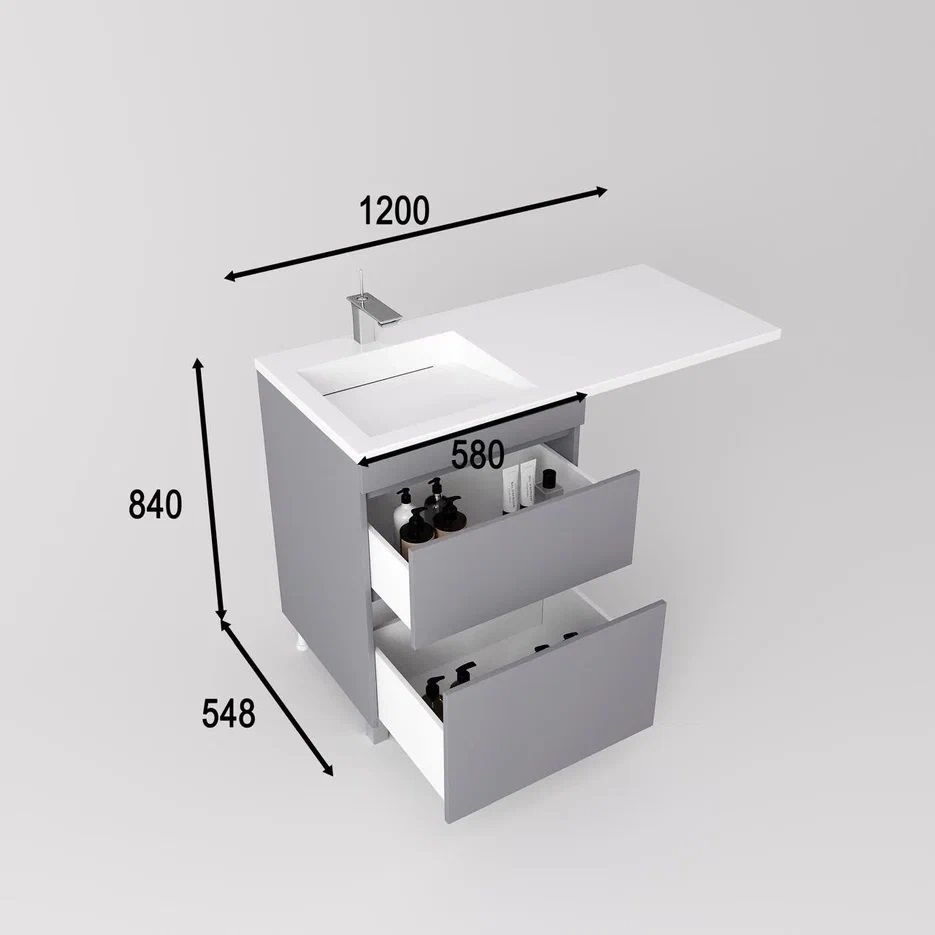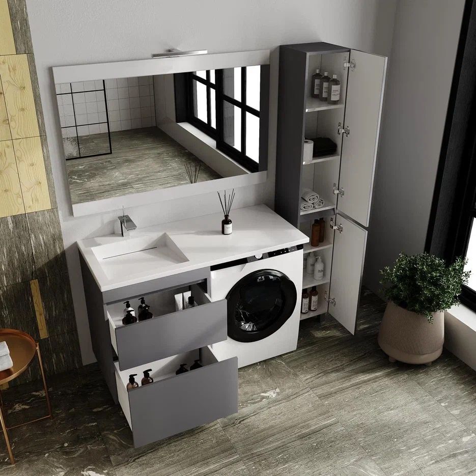 Тумба напольная Style Line Даллас Леон 120 Люкс Plus СС-00002450 под раковину для стиральной машины серый купить