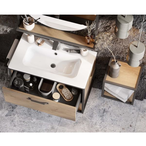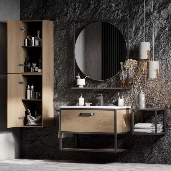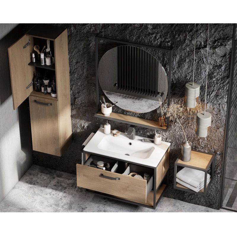 • Тумба Лофт Фабрик 65 в цвете дуб кантри – это сочетание натурального древесного декора и благородства металла