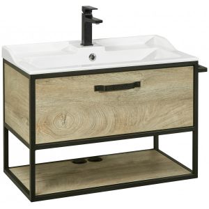 • Тумба Лофт Фабрик 80 в цвете дуб эндгрейн – это сочетание натурального древесного декора и благородства металла