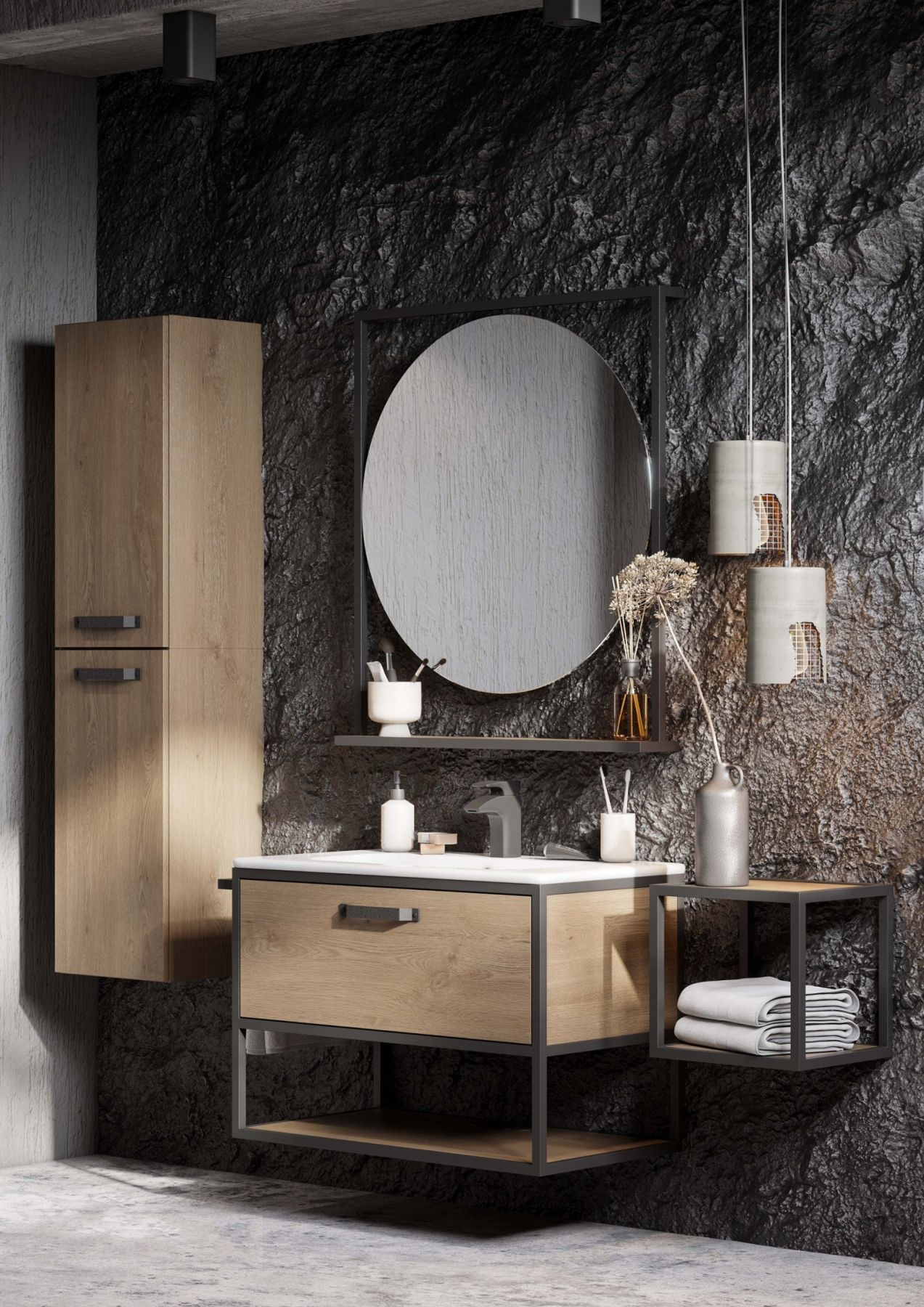 • Тумба Лофт Фабрик 80 в цвете дуб кантри – это сочетание насыщенного древесного декора и благородства металла
