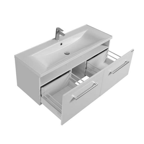 Тумба Мадрид 120 М от AQUATON в белом цвете - воплощение эстетики минимализма в чистом виде. Модель привлекает внимание простотой форм и четкостью линий. Корпус из влагостойкой ЛДСП и фасад из высококачественной МДФ покрыты полиэфирной краской ультрафиолетового отверждения с высокой степенью глянца. Тумба оснащена двумя вместительными ящиками с доводчиками и встроенной системой плавного закрывания и комплектуется удобной раковиной из литого мрамора. Фасад верхнего ящика визуально разделен на два отсека. Для комплектации тумбы отлично подходит прямоугольная раковина AQUATON Айрис.