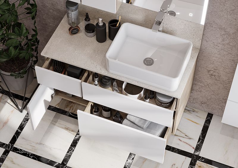 Тумба для комплекта Акватон Мишель 100 дуб эндгрейн не только замечательное украшение для ванной комнаты, но и превосходное функциональное решение любого санузла. Подвесной способ установки дает возможность не только визуально увеличить пространство, но и обеспечивает быстрый и удобный доступ для уборки.Компания Акватон использует при производстве высококачественные водоотталкивающие материалы (ДСП), соответствующие всем необходимым требованиям безопасности. Серия Мишель отличается превосходным дизайном с соблюдением всех значительных элементов современного стиля. Основным цветом, в котором выполнена тумба под раковину Акватон Мишель является белый, безупречно впишется в любой дизайн проект. Тумба под раковину предусматривает удобную и вместительную систему хранения, состоящую из дверей, ящиков с системой нажимного открывания. Качественные доводчики позволяют обеспечить мягкое и тихое закрывание. Ключевые габариты изделия: ширина 100 см, глубина 46 см, высота 52 см.Страной бренда Акватон является Россия, все товары производятся с выполнением соответствующих стандартов качества, что позволяет быть полностью уверенными в долговечности и надежности. Тумба для комплекта Акватон Мишель 100 дуб эндгрейн это абсолютный комфорт в современной ванной комнате.