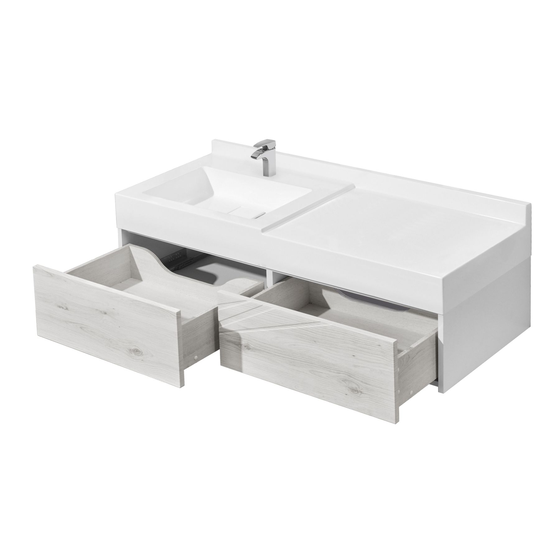 Тумба для комплекта Акватон Сакура 120 ольха наварра не только прекрасное украшение для ванной комнаты, но и несравненное функциональное решение любого санузла. Подвесной способ установки дает возможность не только визуально увеличить пространство, но и обеспечивает быстрый и удобный доступ для уборки.В производстве используют только качественные влагостойкие материалы (ДСП), в составе которых полностью отсутствуют опасные вещества. Серия Сакура отличается превосходным дизайном с соблюдением всех серьезных элементов современного стиля. Основным цветом, в котором выполнена тумба под раковину Акватон Сакура является белый, безупречно впишется в любой дизайн проект. Тумба под раковину предусматривает удобную и вместительную систему хранения, состоящую из ящиков. Важные размеры товара: ширина 119.6 см, глубина 46.6 см, высота 24 см.Страной бренда Акватон является Россия, все товары производятся с выполнением соответствующих стандартов качества, что позволяет быть полностью уверенными в долговечности и надежности. Тумба для комплекта Акватон Сакура 120 ольха наварра правильный выбор в современном дизайне ванной, придающий уникальность всему помещению, при этом сохраняя функциональность.