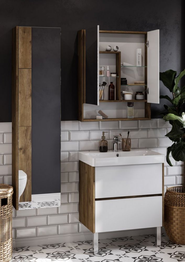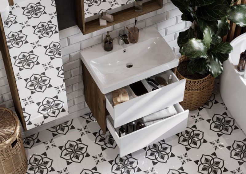 Тумба под раковину Акватон Сканди 70см белый/дуб рустикальный 1A251801SDZ90