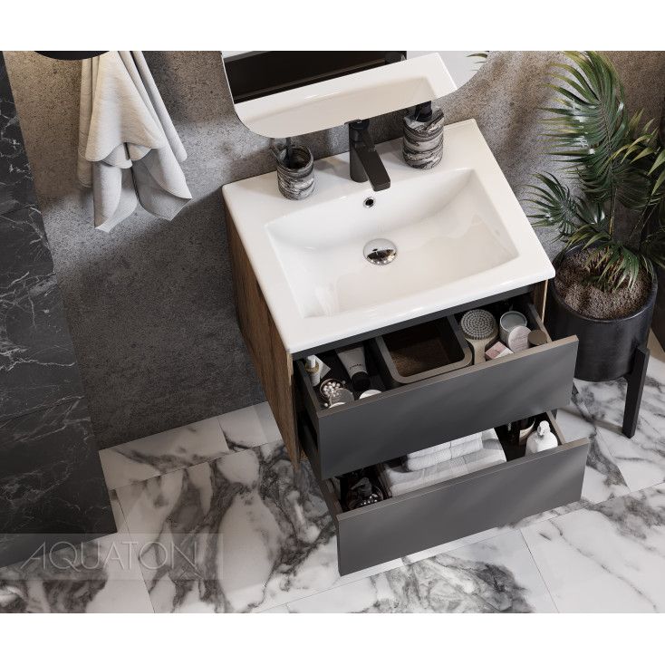 Тумба под раковину Акватон Сохо 60см дуб веллингтон/графит 1A258001AJA00