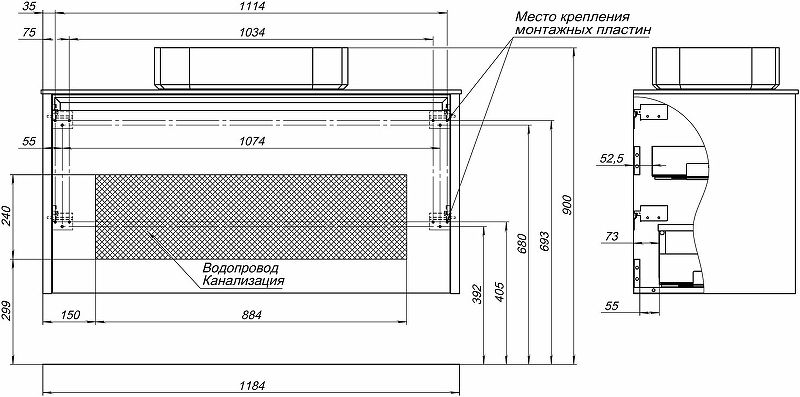 Габариты корпуса тумбы (ШхВхГ): 1184х568х460 мм.