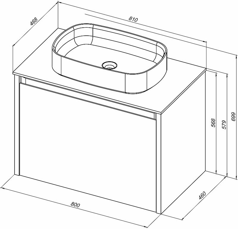 Габариты корпуса тумбы (ШхВхГ): 800х568х460 мм.