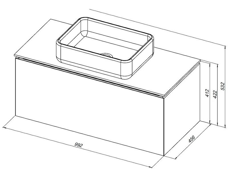 Габариты корпуса тумбы (ШхВхГ): 992х412х456 мм.