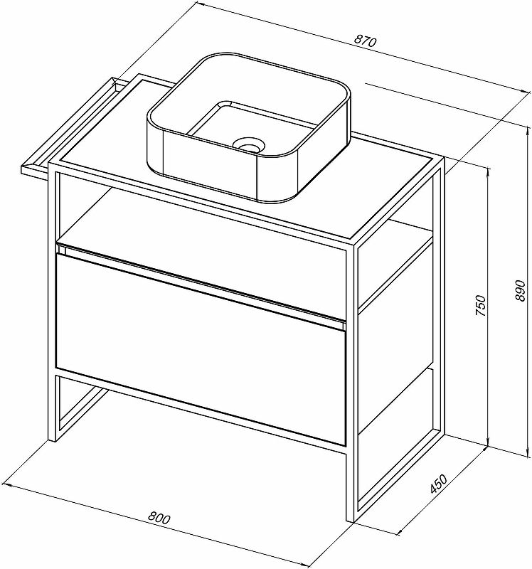 В комплекте поставки:Тумба под раковину (металлический каркас, выдвижной ящик).