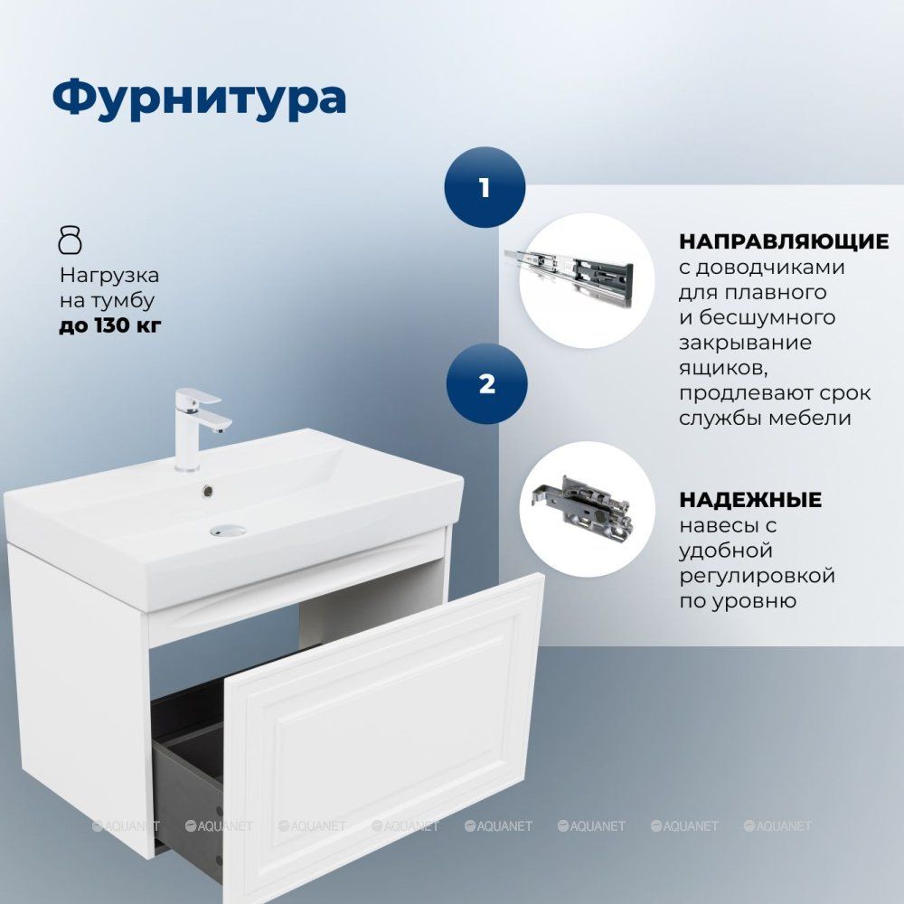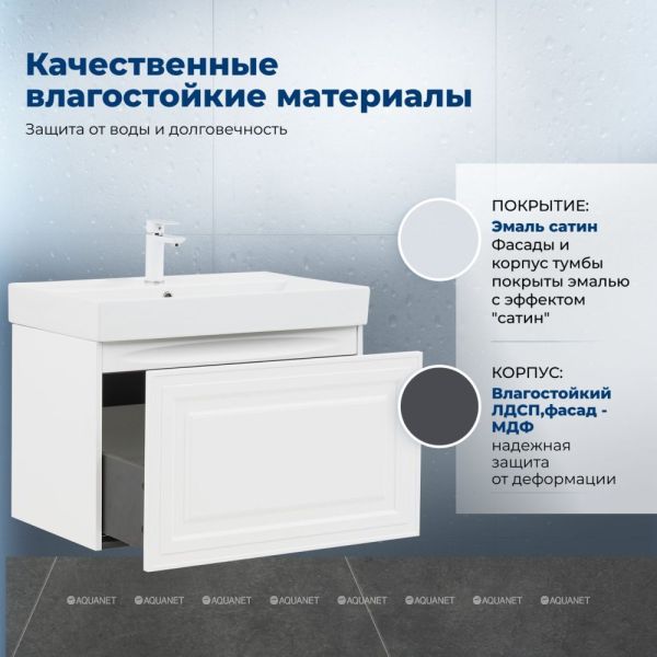 Тумба под раковину Aquanet Агата 75 белый сатин — это стильное и функциональное решение для ванной комнаты. Она сочетает в себе прочность, устойчивость к влаге и продуманную конструкцию.