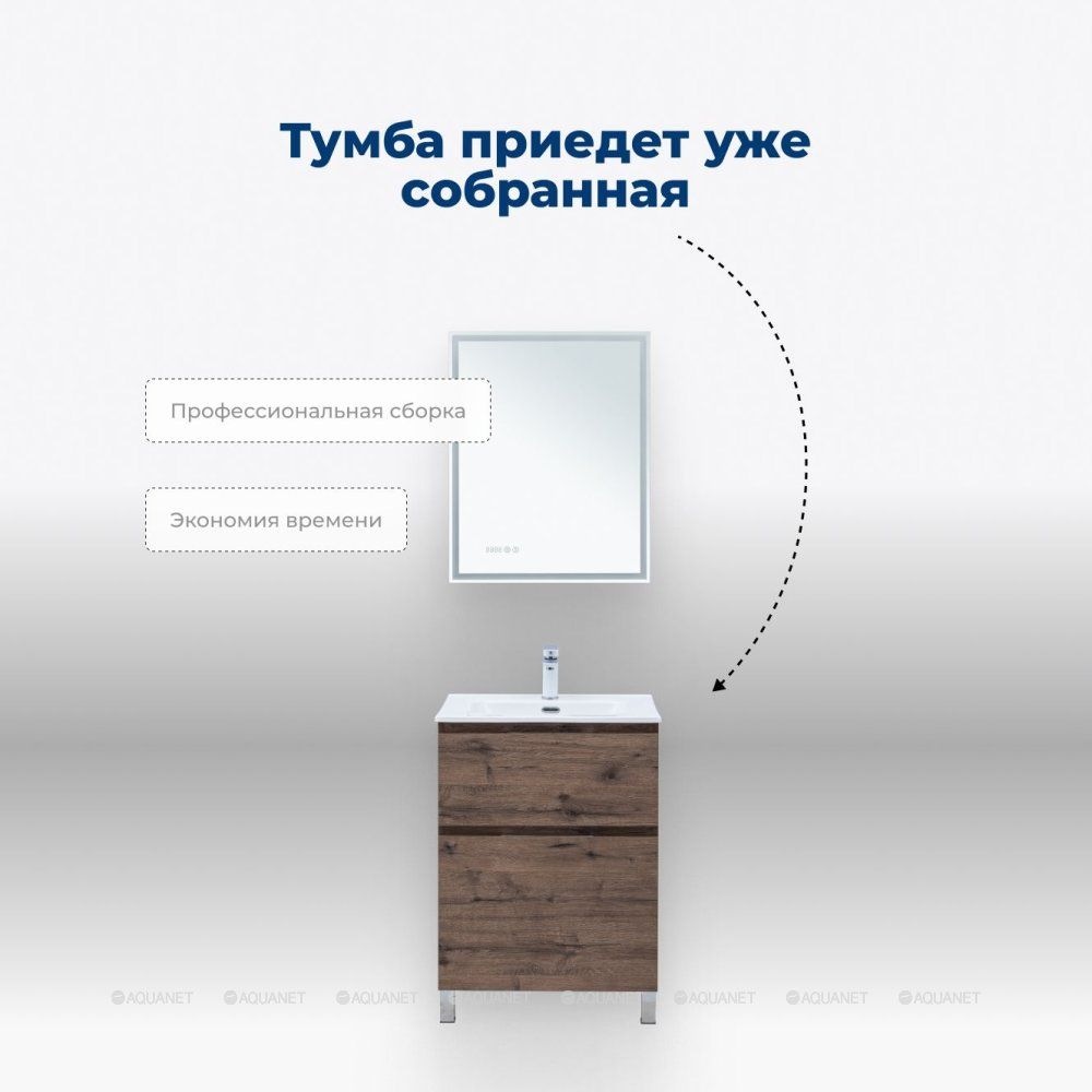 В тумбах за нижним ящиком предусмотрено место для подводки коммуникаций снизу. Тумбы комплектуются керамическими раковинами Flat 50/60/70/80/100 (Aquanet) или Flash 50/60/70/80/100 (Aquanet), что позволяет подобрать оптимальное решение для любой ванной комнаты.