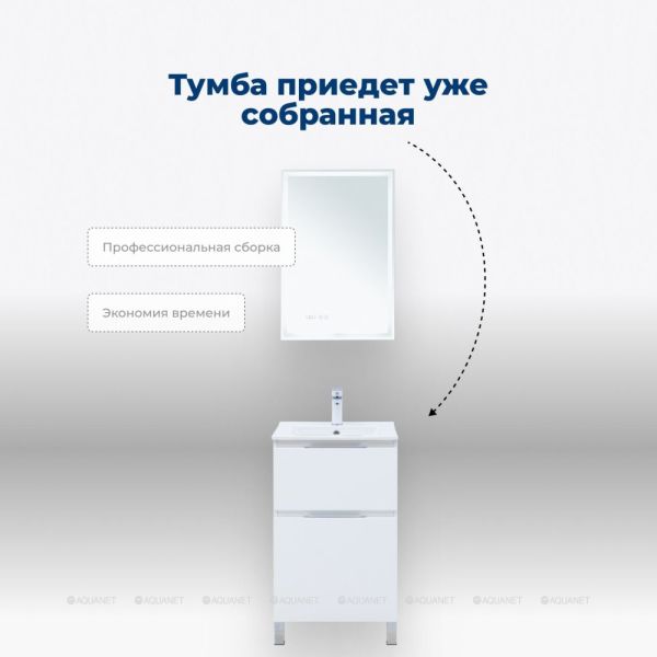 Тумба под раковину Aquanet Алвита New 50 напольная, белый матовый. Внутренние детали изготовлены... Подробнее