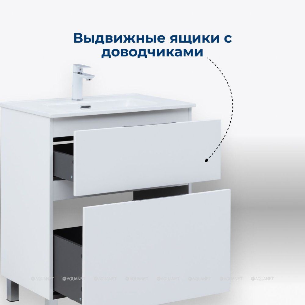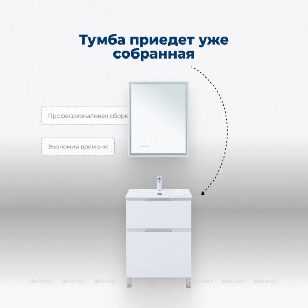 Тумба под раковину Aquanet Алвита New 60 напольная, белый матовый. Внутренние детали изготовлены... Подробнее