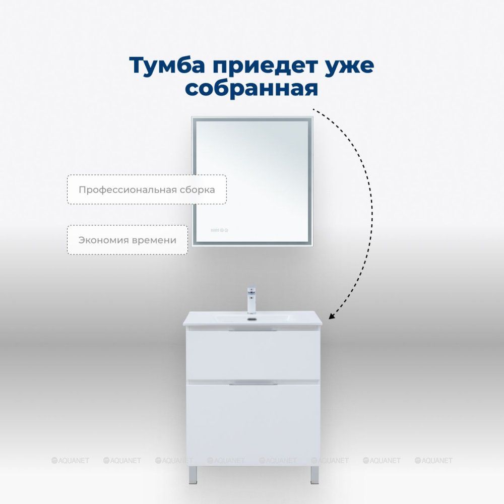 Тумбы комплектуются керамическими раковинами Flat 50/60/70/80/100 (Aquanet) или Flash 50/60/70/80/100 (Aquanet).