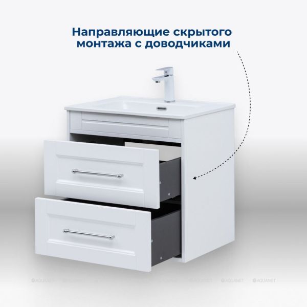 Тумба под раковину Aquanet Бостон new 60 белый сатин Стильная и функциональная тумба под рако... Подробнее