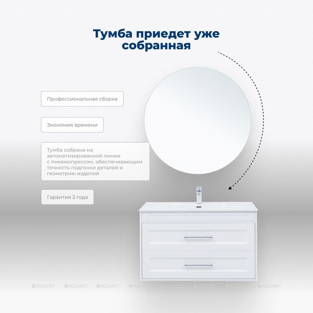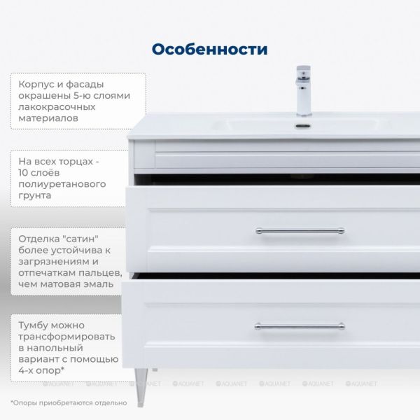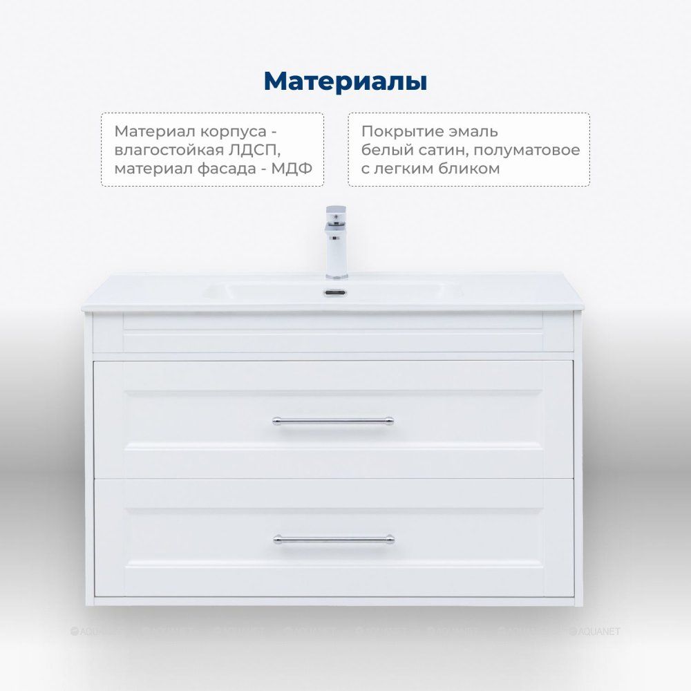 Тумба под раковину Aquanet Бостон New 306369 100 см белый сатин