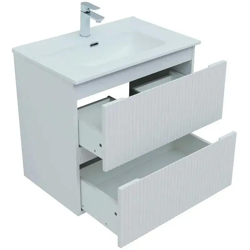 Тумба под раковину Aquanet Джейн (Flat) 70 белый матовый — практичное и стильное решение для ванной комнаты. Корпус и фасады изготовлены из МДФ, покрытого суперматовой пленкой ПВХ повышенной прочности с эффектом «Soft touch». Покрытие не только приятное на ощупь, но и надежно защищает мебель от влаги. Полимерная структура пленки не пропускает воду, поэтому тумба не деформируется со временем и сохраняет первоначальный вид.