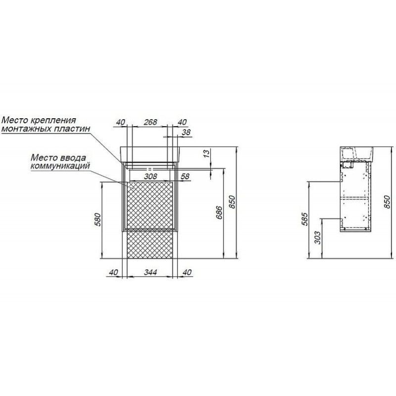 Тумба под раковину Aquanet Милан 306378 45 см чёрный