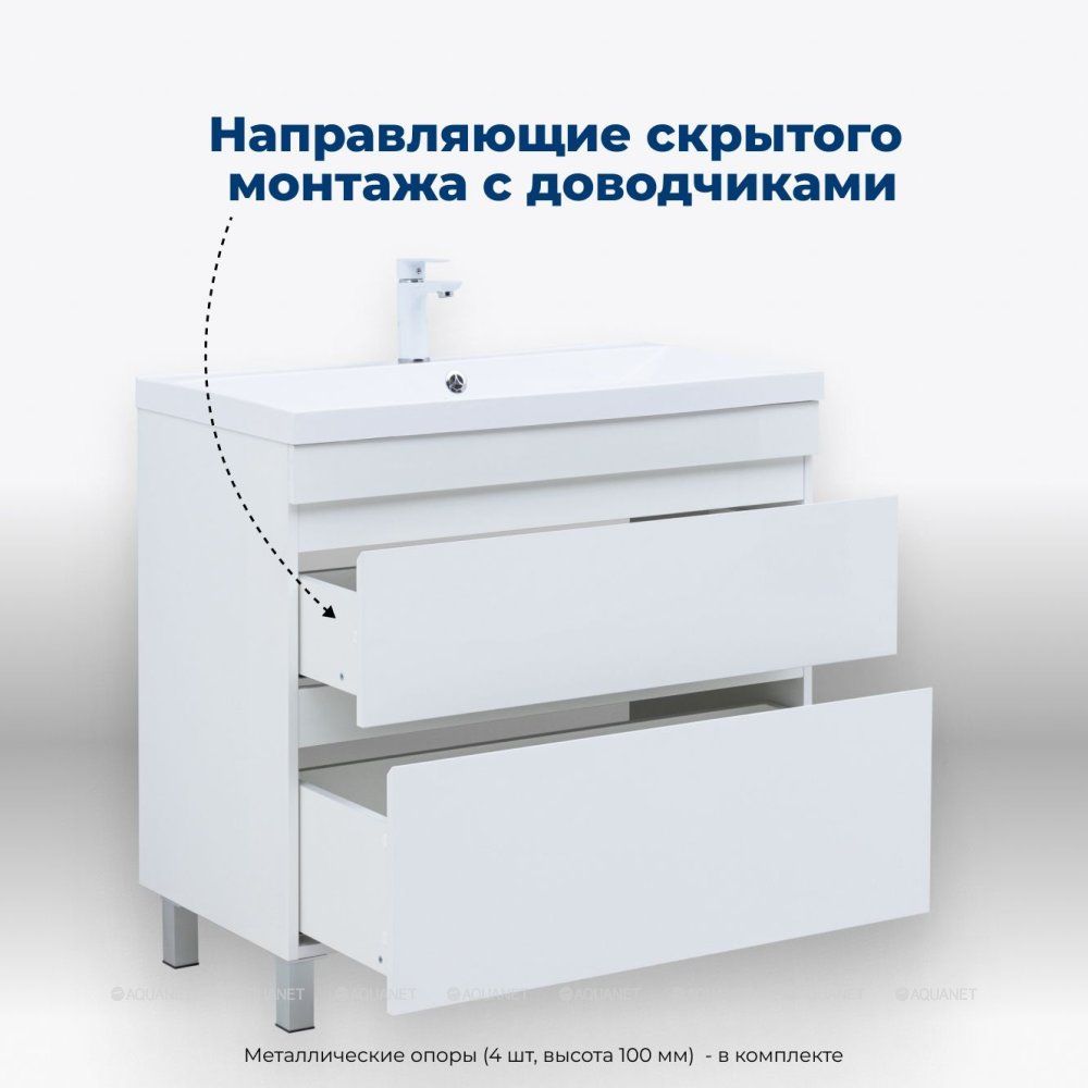 Тумба под раковину Aquanet Нота New 90 белый глянец