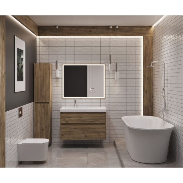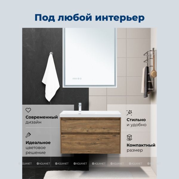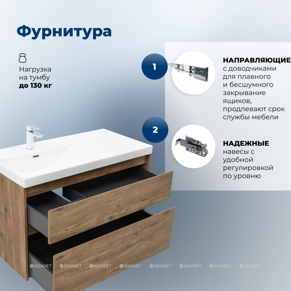 Стильная и практичная тумба для ванной комнаты с продуманной конструкцией. Модель Aquanet Nova Lite 2.0 100 выполнена в цвете дуб рустикальный – матовое покрытие имитирует фактуру натурального дерева и не оставляет отпечатков пальцев.