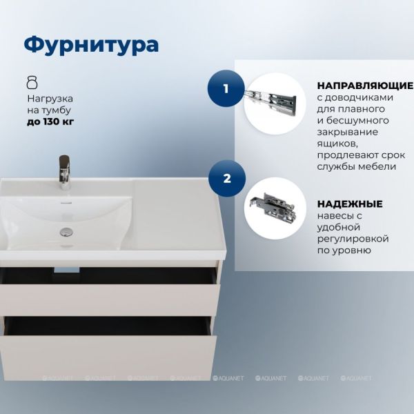 Вместительный нижний ящик – удобное хранение банных принадлежностей.
