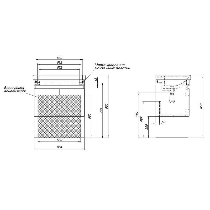 Тумба Aquanet Оптима 70 продумана до мелочей. В ней предусмотрено удобное место для подводки коммуникаций снизу, что облегчает установку и подключение сантехнического оборудования.
