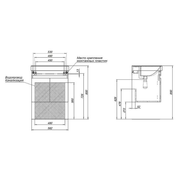 Тумба Aquanet Оптима 60 продумана до мелочей. В ней предусмотрено удобное место для подводки коммуникаций снизу, что облегчает установку и подключение сантехнического оборудования.