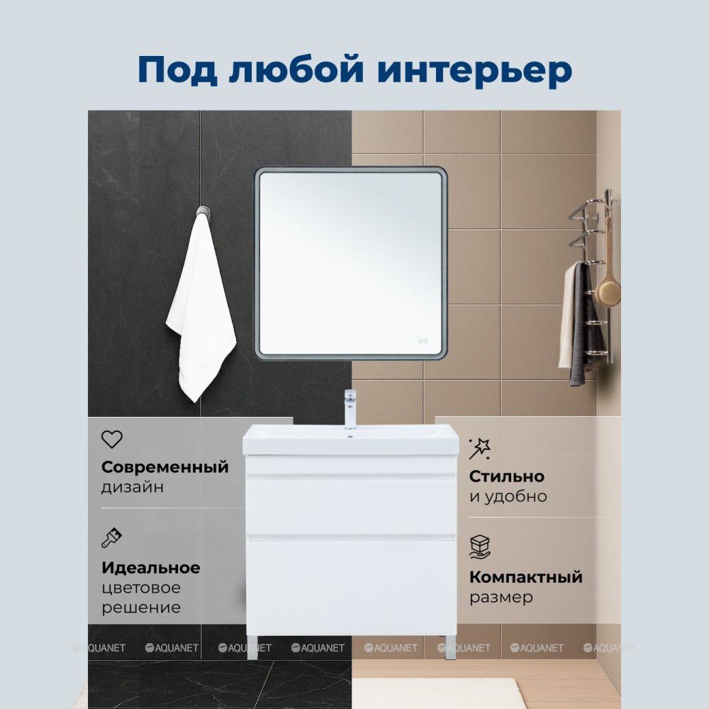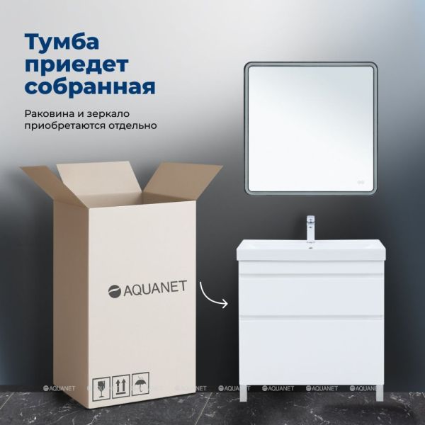 Тумба под раковину Aquanet Слим 80 напольная, белый сатин – компактное и функциональное р... Подробнее