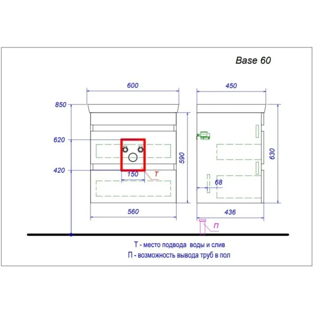 Тумба под раковину Aquanika Base AQB584352RU116 60 см дуб золотой/белый купить